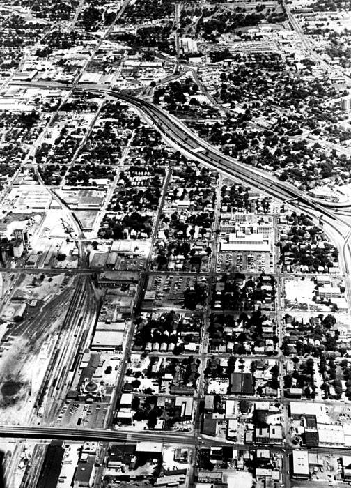 Like many districts shaped by rail transportation, Cattleman Square experienced significant changes in the mid-twentieth century. As automobiles and highways replaced trains as the primary means of travel, passenger rail declined. The construction of Interstate 35 introduced a major physical barrier between the district and downtown, disrupting historic street connections and contributing to economic decline.